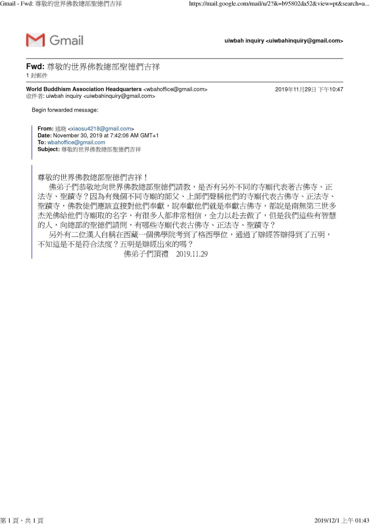 世界佛教總部諮詢中心聖德們就以下三個問題回覆諮詢:
