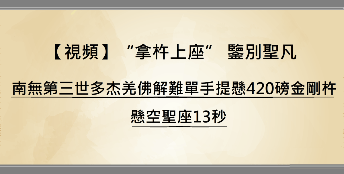 【視頻】“拿杵上座” 鑒別聖凡 南無第三世多杰羌佛解難單手提懸420磅金剛杵 懸空聖座13秒