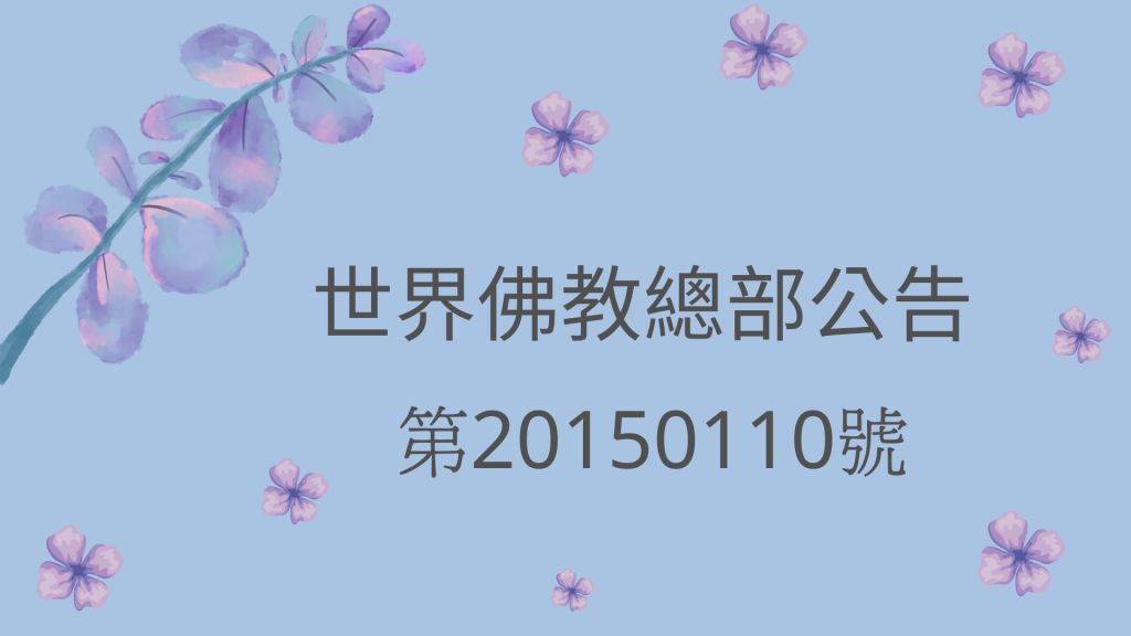 聯合國際世界佛教總部 二零壹五年八月二十三日