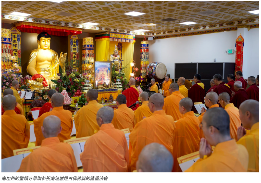 2023年10月1日,位於南加州的聖蹟寺 (The Holy Miracles Temple)舉辦了一場恭祝南無燃燈古佛佛誕的隆重法會。此次法會由世界佛教總部、聖蹟寺、華藏寺及聖格講堂聯合主辦,當天湧入海內外諸多信眾,聖蹟寺大殿殿堂桌案上供奉鮮美花果,熒燭燈輝,一片祥和。